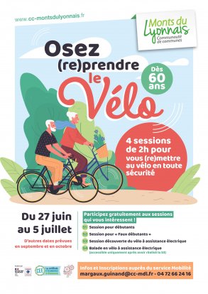 Vous avez 60 ans ou plus et vous souhaitez reprendre confiance en l'usage du vélo ? Le service Mobilité de la Communauté de communes des Monts du Lyonnais vous propose de participer GRATUITEMENT à plusieurs sessions, pour vous mettre OU vous remettre à vélo.