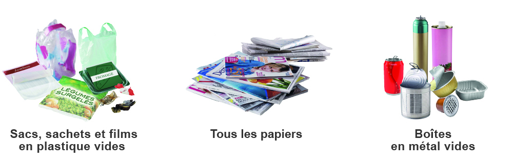 * les piles électriques, les restes alimentaires et le verre sont interdits dans le sac jaune